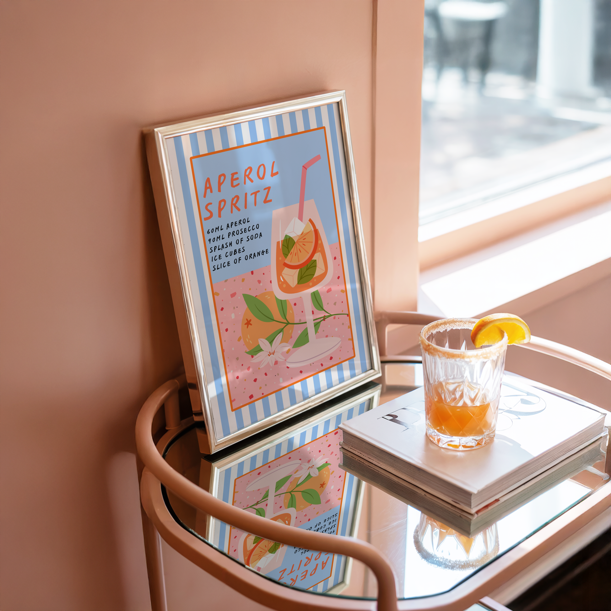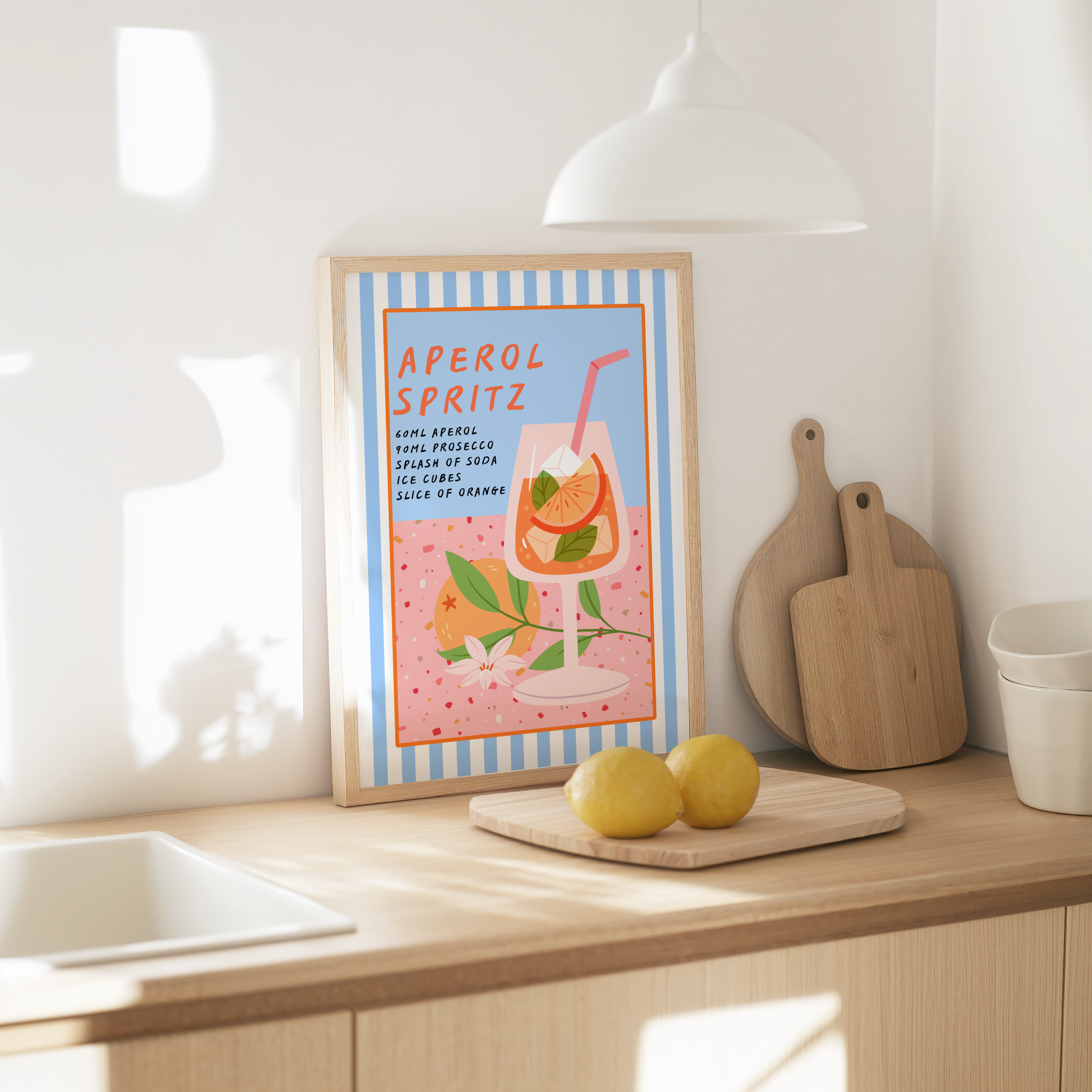 Whether you’re a cocktail enthusiast, an Aperol Spritz devotee, or simply love cheerful, contemporary prints, this artwork is the perfect way to elevate your decor.