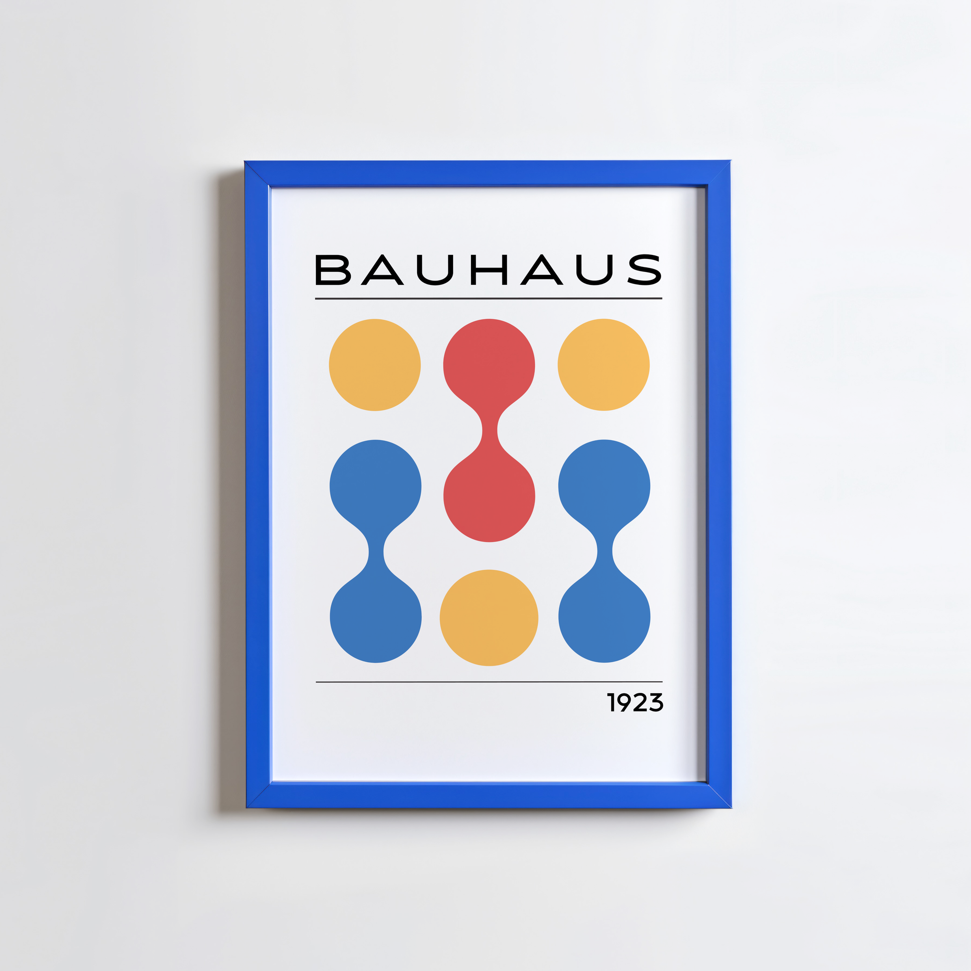 Celebrate the bold simplicity of modernist design with this Bauhaus 1923 poster print. Inspired by the iconic Bauhaus movement, this striking design features geometric shapes in a harmonious palette of primary colors—red, blue, and yellow—arranged with clean symmetry and visual rhythm. The text "BAUHAUS" and the year "1923" highlight the founding era of this influential design school.