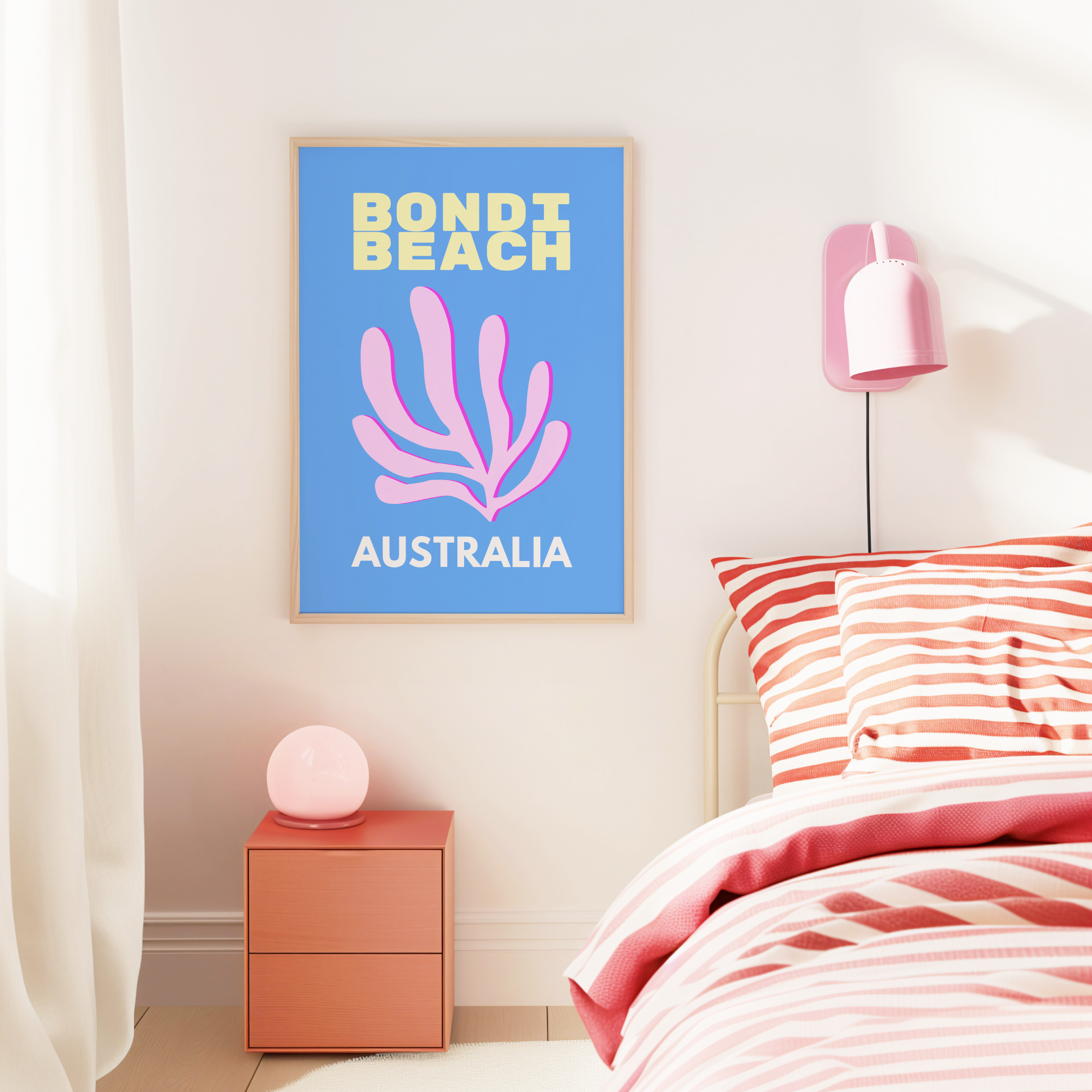 This poster print captures the laid-back spirit and coastal charm of Bondi Beach — perfect for beach lovers, travel enthusiasts, or anyone looking to add a touch of Aussie sunshine to their walls. With its breezy and modern design, it fits seamlessly into coastal, minimalist, boho, or eclectic interiors.
