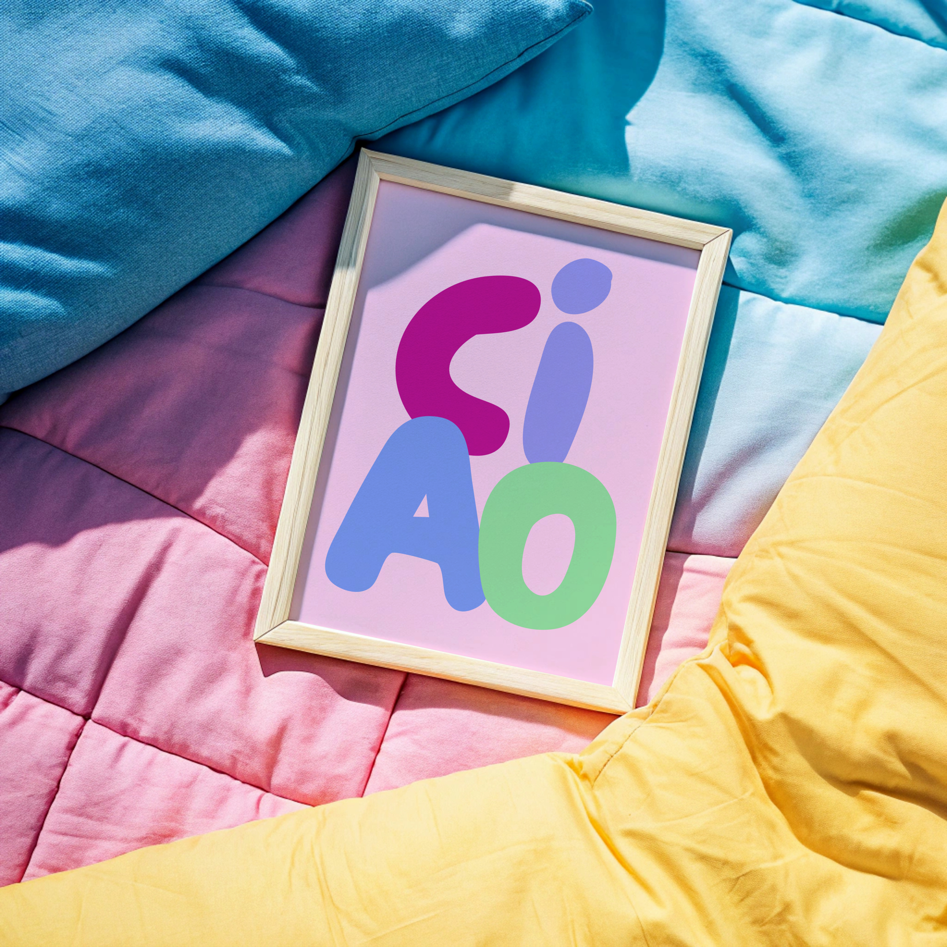 This fun CIAO poster print is sure to bring a burst of energy to your space! With the iconic Italian greeting “CIAO” in big, stylish letters set against a playful pink background, this print combines modern charm with cheerful vibes. It’s the perfect piece to spark joy and personality in any room!