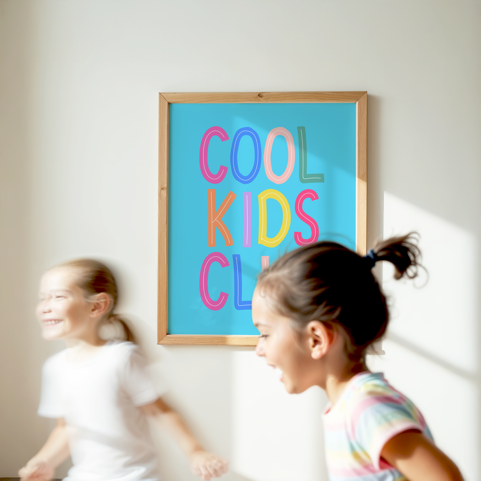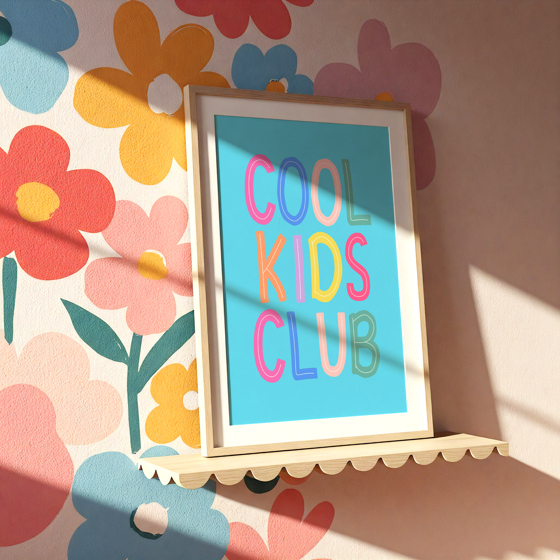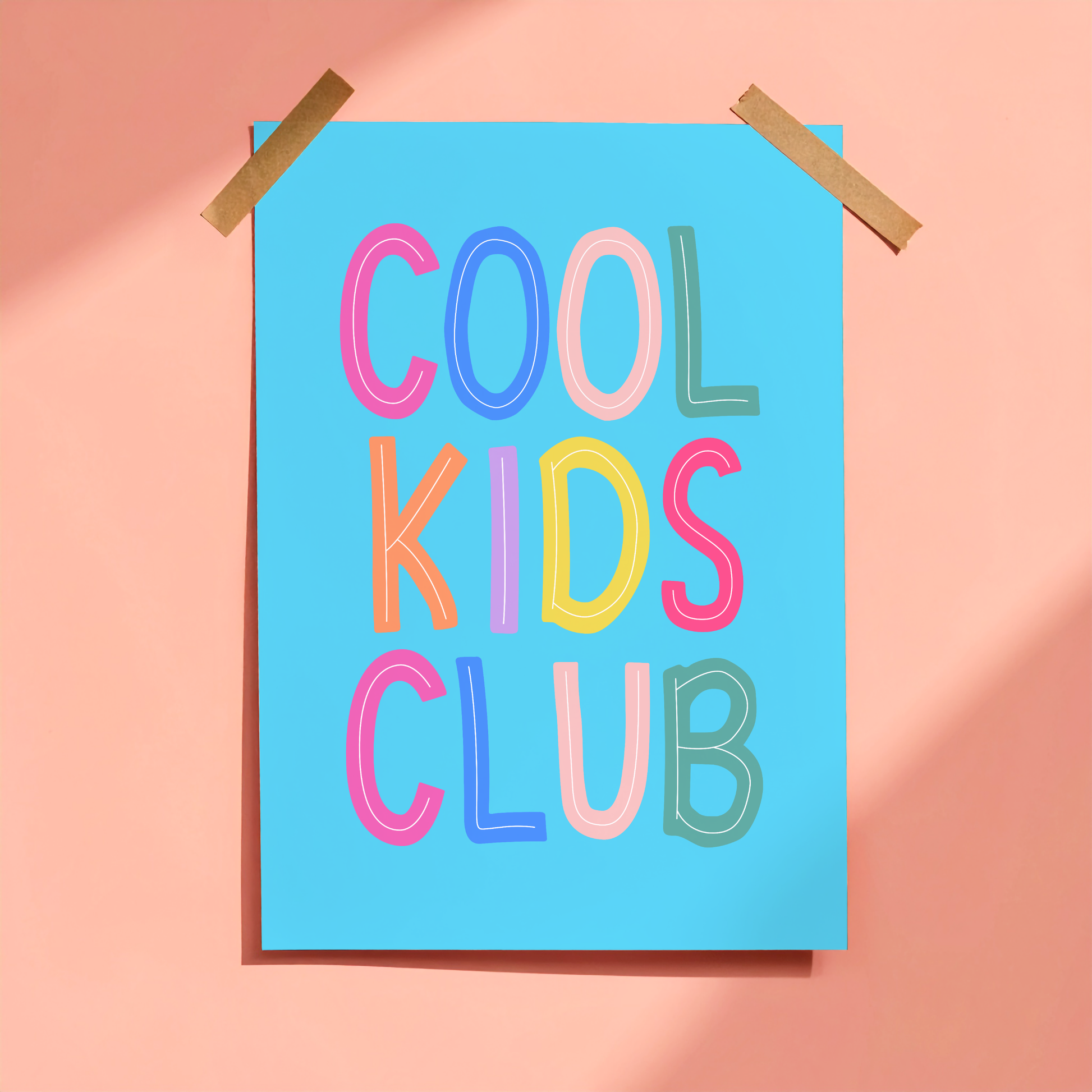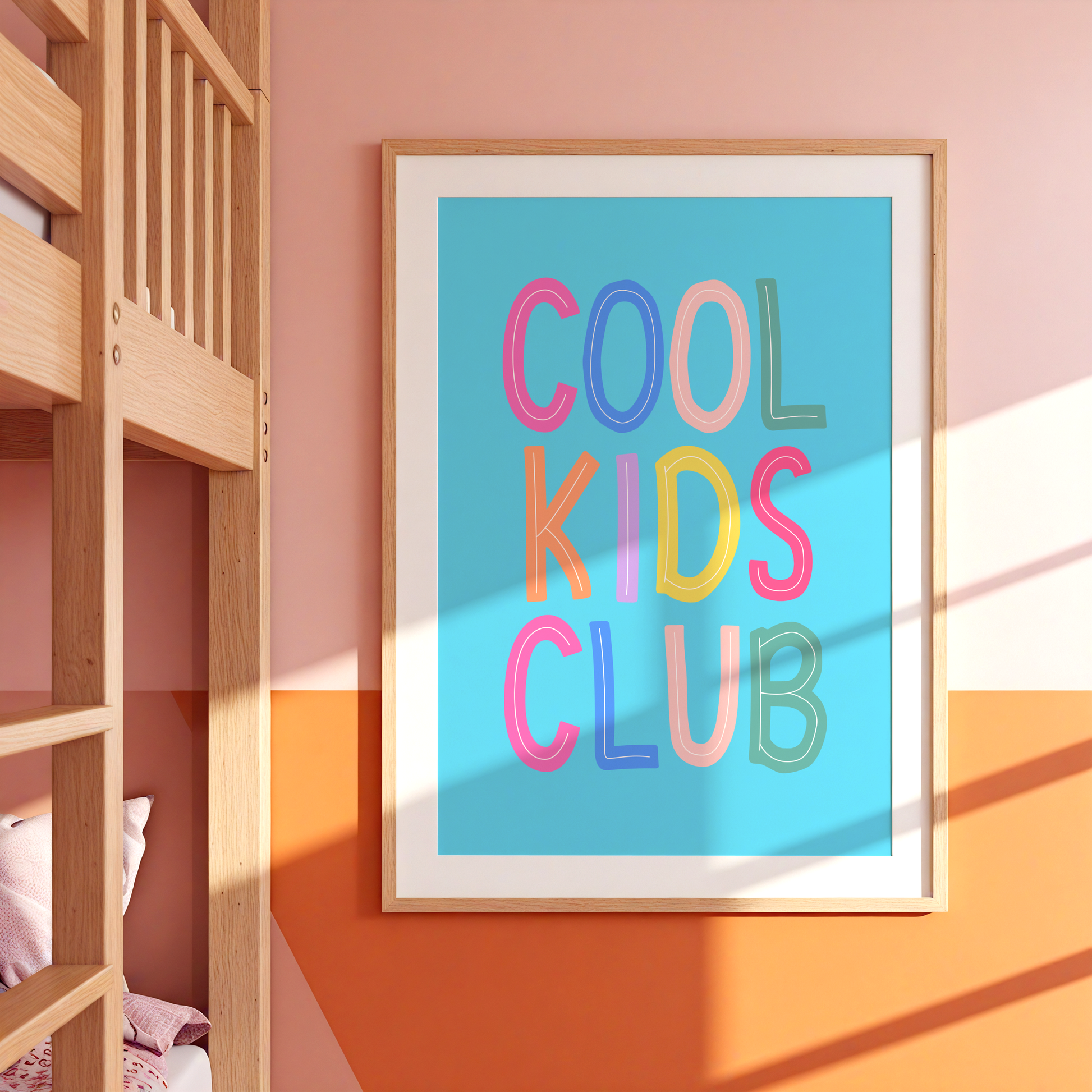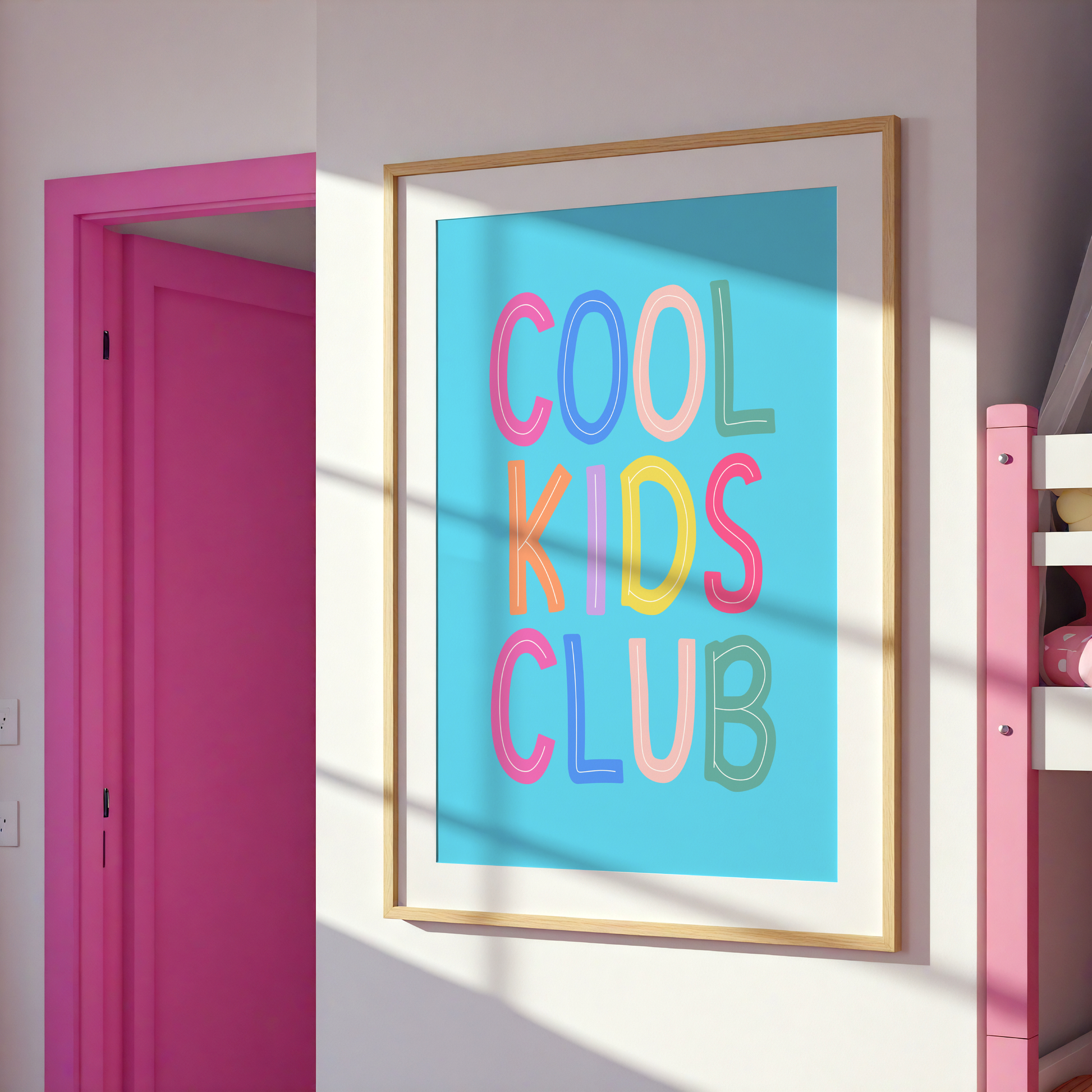 Welcome to the Cool Kids Club – the perfect poster print for fun, playful, and confident kids! This bright and colourful quote print features bold rainbow letters on a vibrant blue background, making it an eye-catching addition to any child’s space.