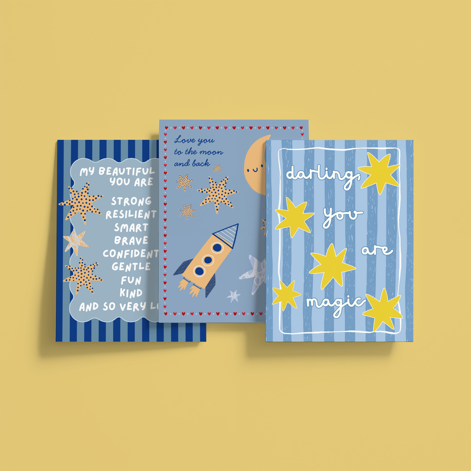 Brighten their world with this sweet, uplifting “Darling, You Are Magic” poster print. Soft hand-drawn lettering, cheerful yellow stars, and calming blue stripes create a whimsical, magical atmosphere perfect for nurseries, kids’ rooms, playrooms, or any space that could use a little extra joy and sparkle.