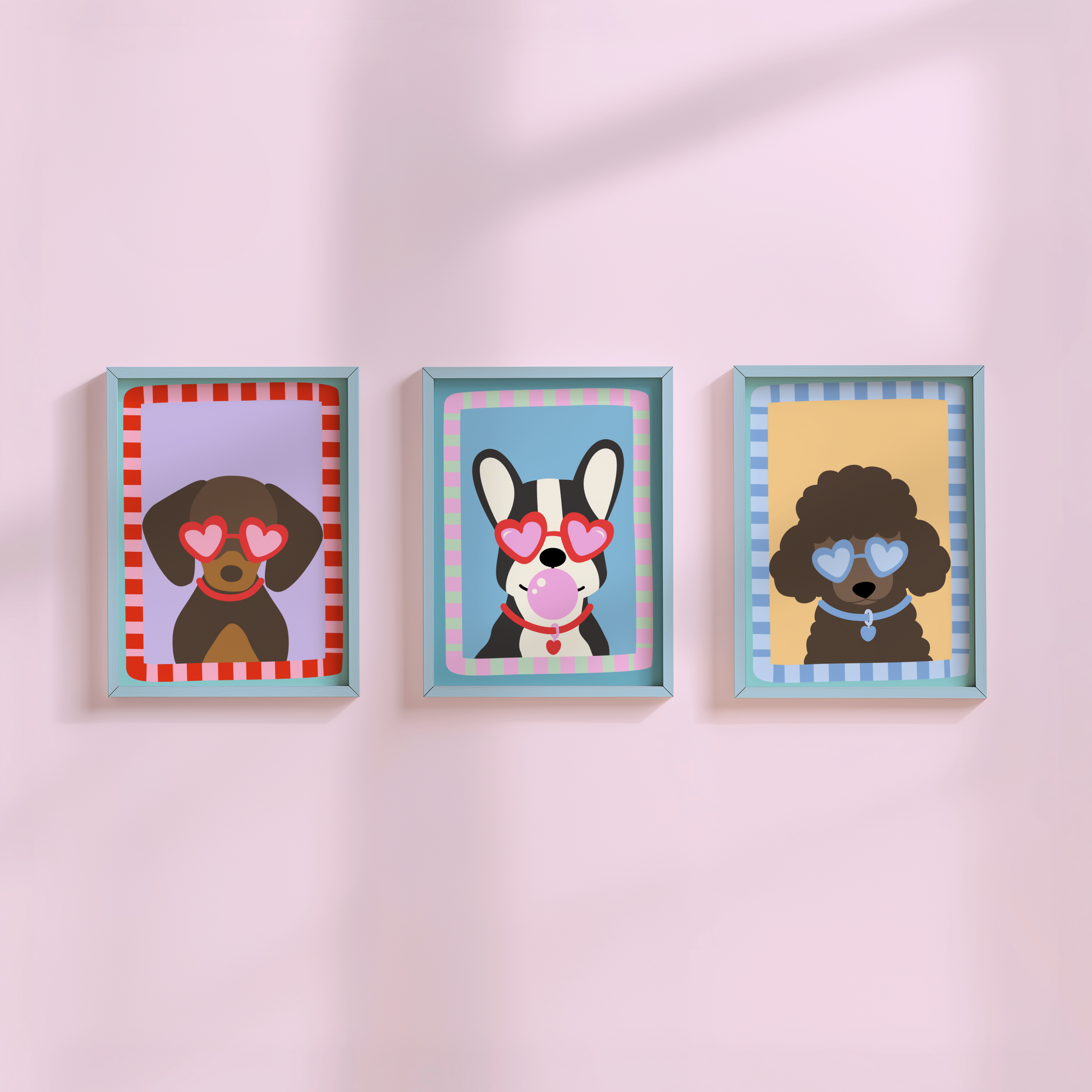 Featuring an adorable Frenchie wearing pink heart-shaped sunglasses and blowing bubble gum, this playful design is perfect for dog lovers of all ages.