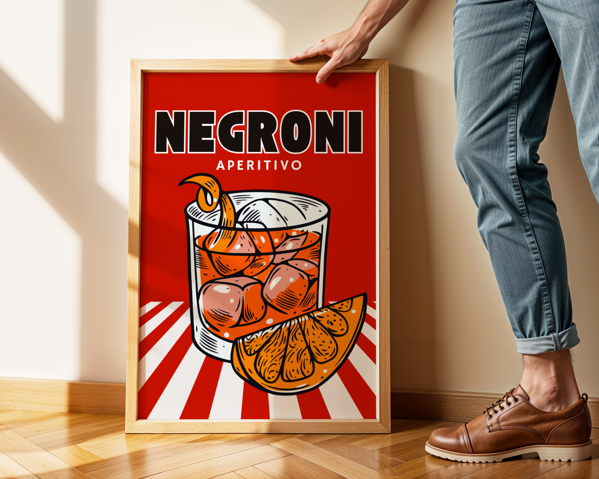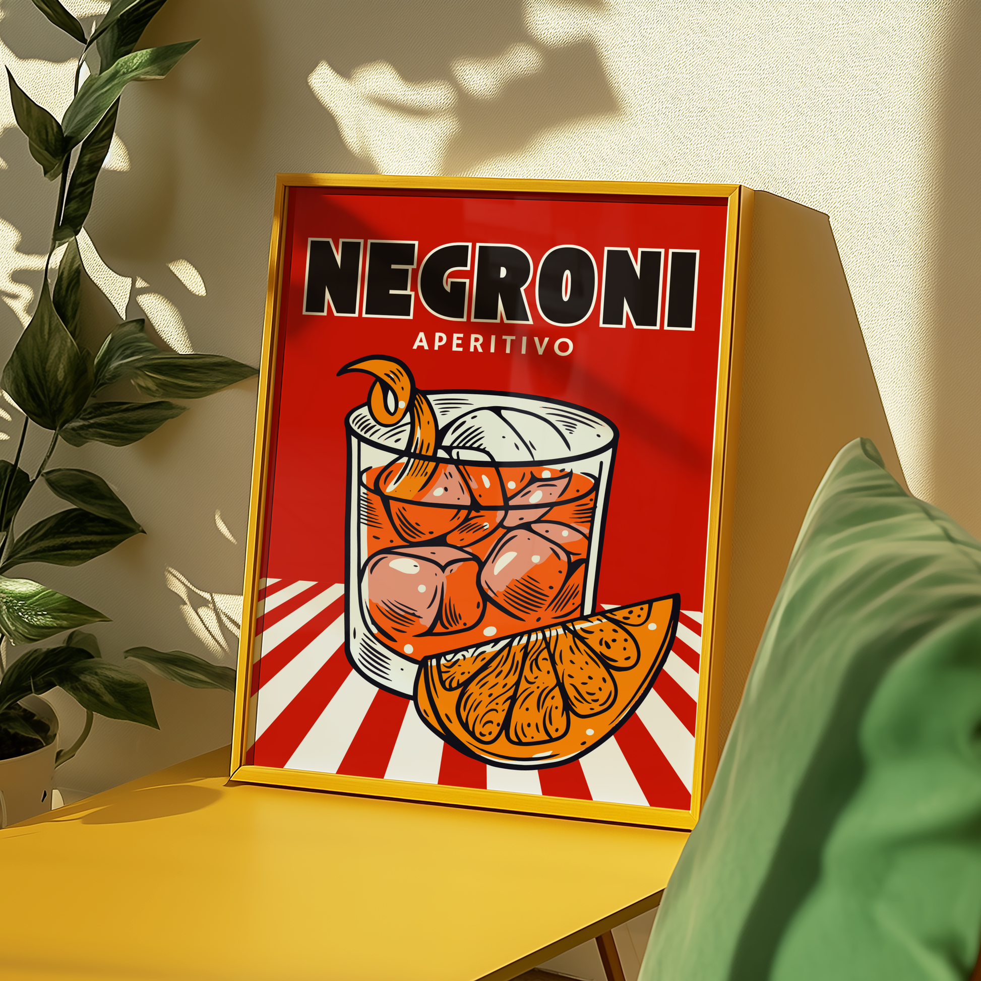 Whether you're a Negroni lover or simply appreciate retro cocktail art, this print adds instant charm and personality to your walls.