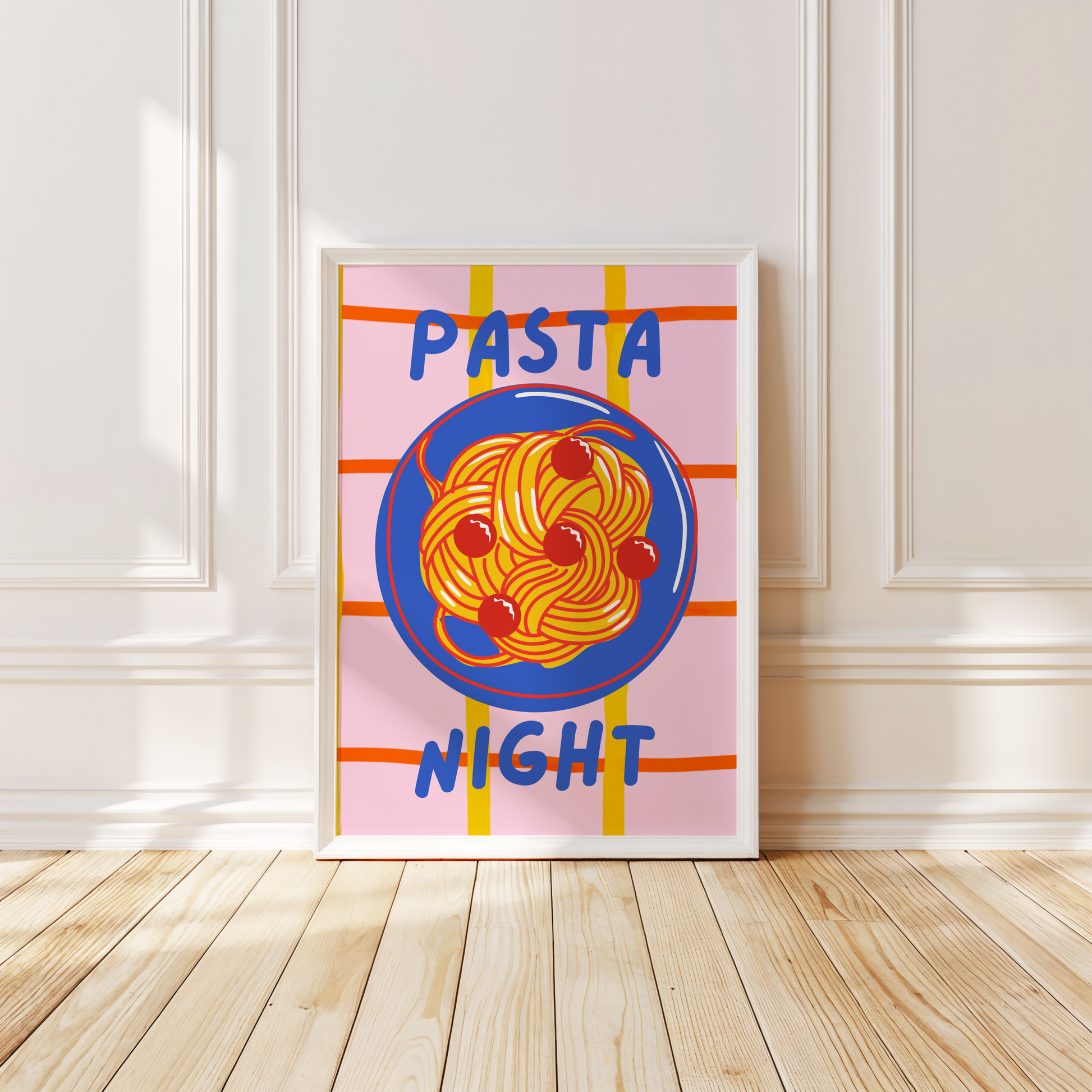 Bring the flavour of Italy to your kitchen with this fun and vibrant "Pasta Night" poster print. 🍝