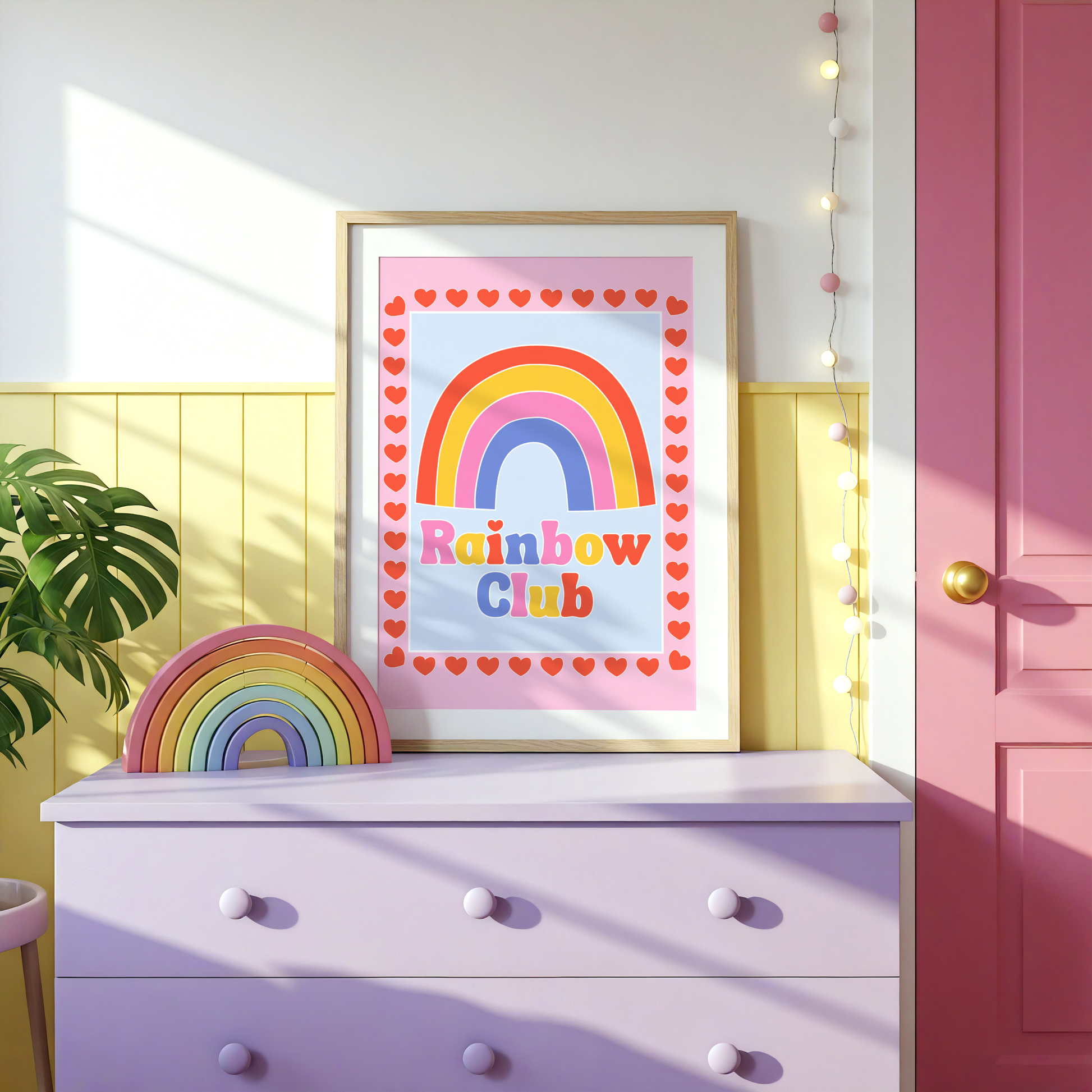 Bring joy, colour, and inclusivity into your space with this Rainbow Club poster print. 🌈💖