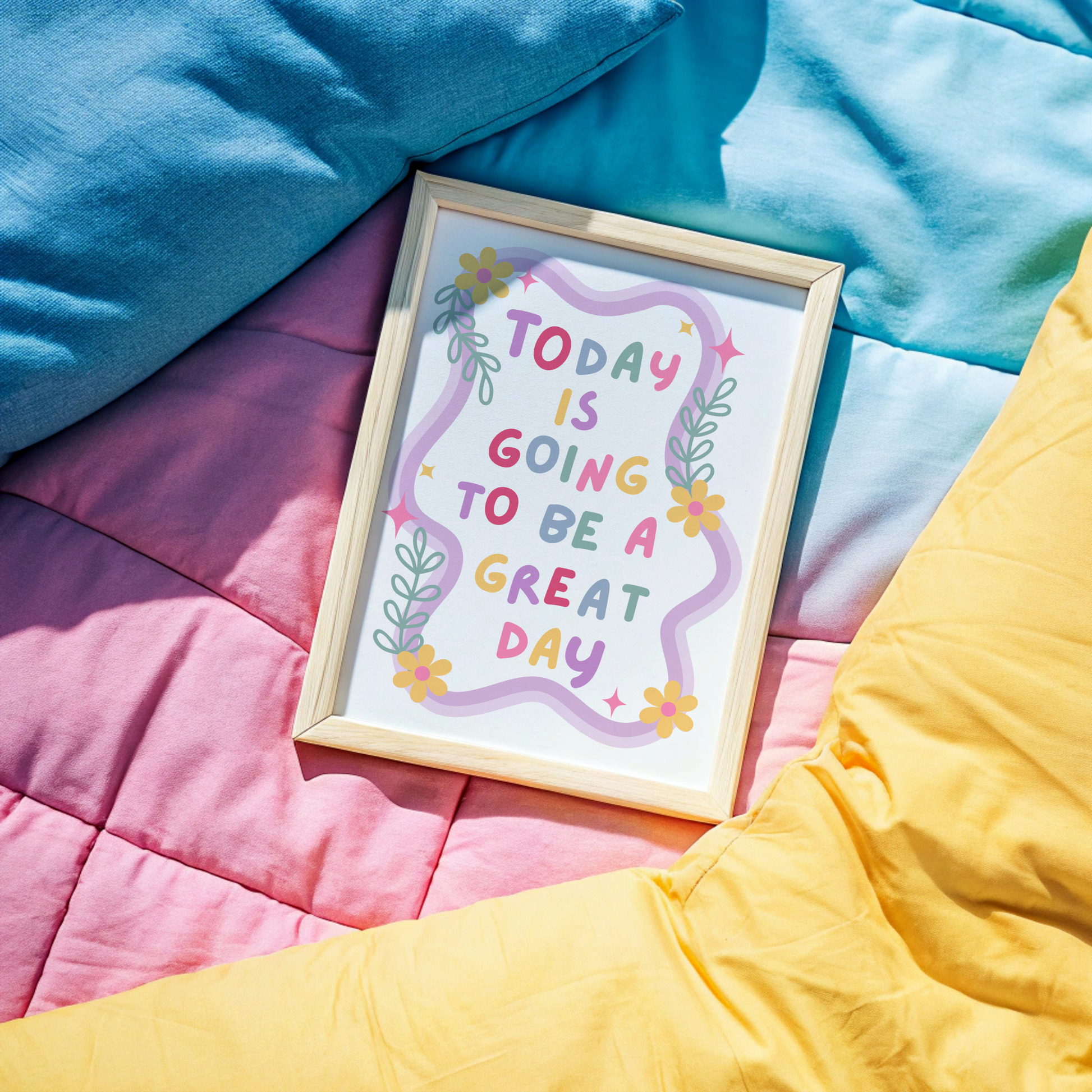 Brighten up your space with this cheerful ‘Today is Going to Be a Great Day’ poster print. 🌈✨