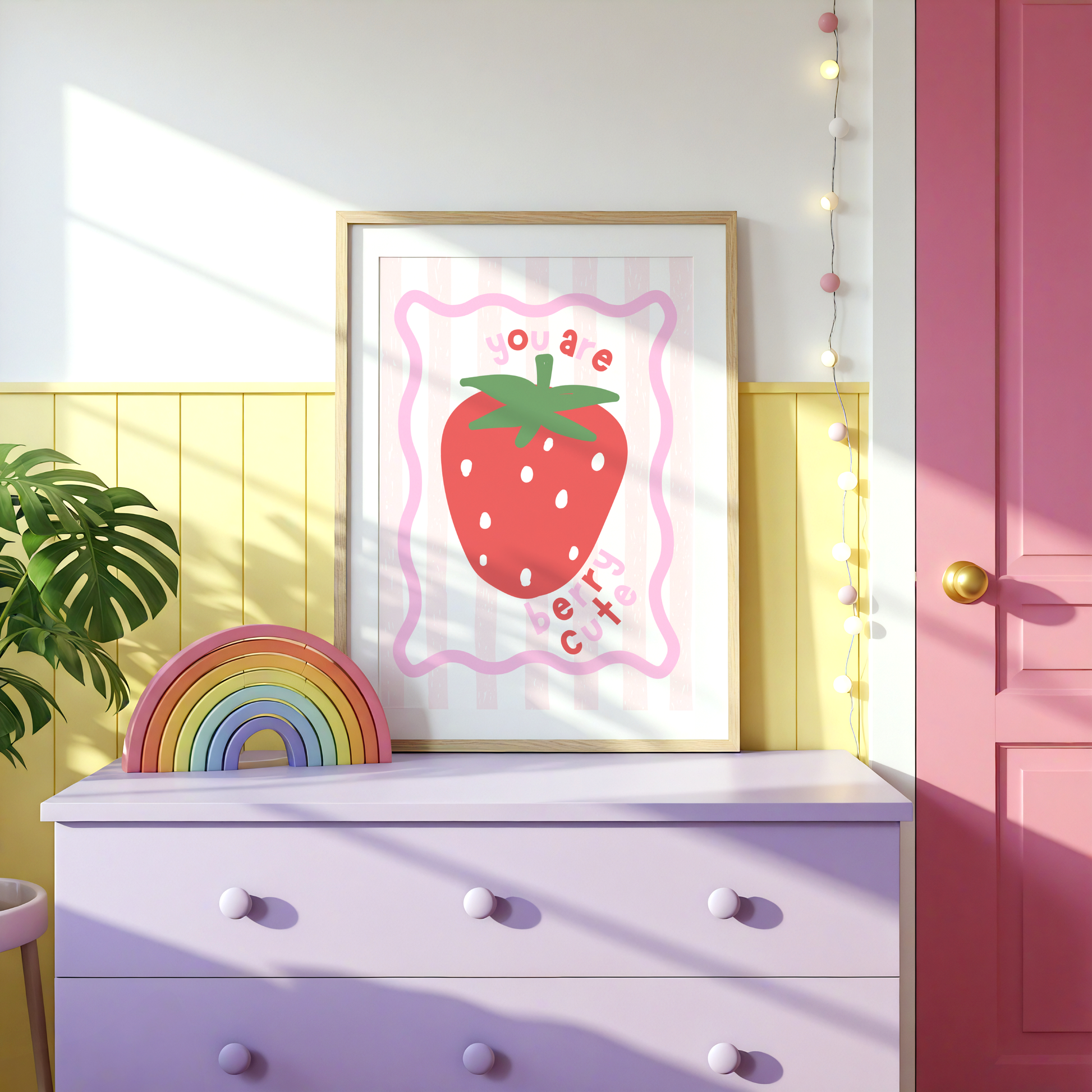 Brighten any space with this sweet and uplifting ‘You Are Berry Cute’ poster print.