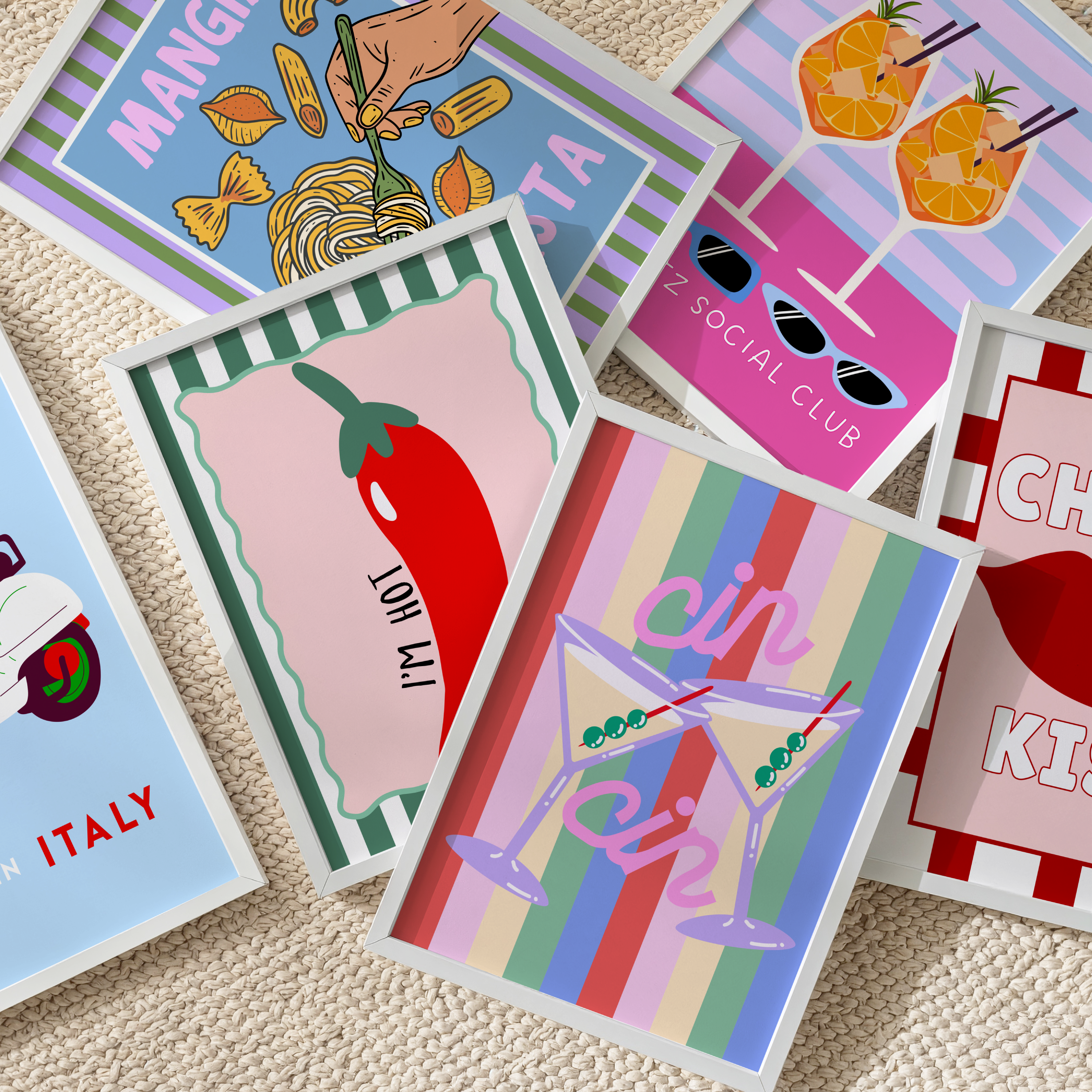 Our signature style blends vibrant colour palettes, graphic typography, retro charm, and effortless cool to create wall art that feels fresh, fun, and full of life. From funky and eclectic to summery and minimalist aesthetics, there’s something here to suit every style.